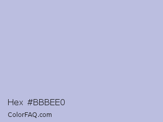 Hex #bbbee0 Color is a very light blue color and the nearest color is Blue Haze #bfbed8. Hex code #bbbee0 and RGB value is rgb(187,190,224). In RGB color space, this color is composed of 73% red, 75% green, 88% blue, In CMYK color space, this color is composed of 17% cyan, 15% magenta, 0% yellow , 12% black , In HSL color space, this color has a hue angle of 235° , 37% saturation and 81% lightness.