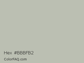 Hex #bbbfb2 Color is a light lime color and the nearest color is Green Spring #b8c1b1. Hex code #bbbfb2 and RGB value is rgb(187,191,178). In RGB color space, this color is composed of 73% red, 75% green, 70% blue, In CMYK color space, this color is composed of 2% cyan, 0% magenta, 7% yellow , 25% black , In HSL color space, this color has a hue angle of 78° , 9% saturation and 72% lightness.