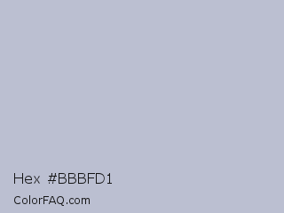 Hex #bbbfd1 Color is a light blue color and the nearest color is Heather #b7c3d0. Hex code #bbbfd1 and RGB value is rgb(187,191,209). In RGB color space, this color is composed of 73% red, 75% green, 82% blue, In CMYK color space, this color is composed of 11% cyan, 9% magenta, 0% yellow , 18% black , In HSL color space, this color has a hue angle of 229° , 19% saturation and 78% lightness.