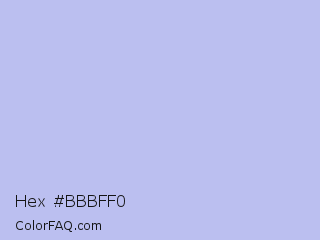 Hex #bbbff0 Color is a very light blue color and the nearest color is Perano #a9bef2. Hex code #bbbff0 and RGB value is rgb(187,191,240). In RGB color space, this color is composed of 73% red, 75% green, 94% blue, In CMYK color space, this color is composed of 22% cyan, 20% magenta, 0% yellow , 6% black , In HSL color space, this color has a hue angle of 235° , 64% saturation and 84% lightness.