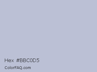 Hex #bbc0d5 Color is a light blue color and the nearest color is Blue Haze #bfbed8. Hex code #bbc0d5 and RGB value is rgb(187,192,213). In RGB color space, this color is composed of 73% red, 75% green, 84% blue, In CMYK color space, this color is composed of 12% cyan, 10% magenta, 0% yellow , 16% black , In HSL color space, this color has a hue angle of 228° , 24% saturation and 78% lightness.
