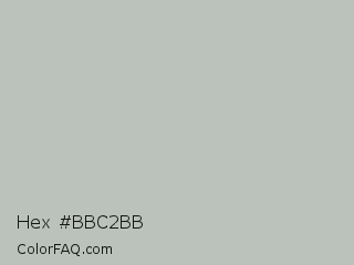 Hex #bbc2bb Color is a light green color and the nearest color is Gray X11 Gray #bebebe. Hex code #bbc2bb and RGB value is rgb(187,194,187). In RGB color space, this color is composed of 73% red, 76% green, 73% blue, In CMYK color space, this color is composed of 4% cyan, 0% magenta, 4% yellow , 24% black , In HSL color space, this color has a hue angle of 120° , 5% saturation and 75% lightness.