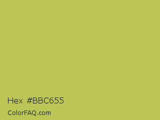 Hex #bbc655 Color is a normal yellow color and the nearest color is Celery #b8c25d. Hex code #bbc655 and RGB value is rgb(187,198,85). In RGB color space, this color is composed of 73% red, 78% green, 33% blue, In CMYK color space, this color is composed of 6% cyan, 0% magenta, 57% yellow , 22% black , In HSL color space, this color has a hue angle of 66° , 50% saturation and 55% lightness.