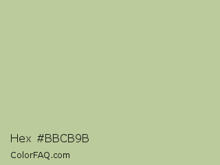 Hex #bbcb9b Color is a light green color and the nearest color is Pine Glade #c7cd90. Hex code #bbcb9b and RGB value is rgb(187,203,155). In RGB color space, this color is composed of 73% red, 80% green, 61% blue, In CMYK color space, this color is composed of 8% cyan, 0% magenta, 24% yellow , 20% black , In HSL color space, this color has a hue angle of 80° , 32% saturation and 70% lightness.