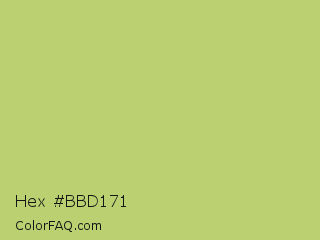 Hex #bbd171 Color is a light lime color and the nearest color is Wild Willow #b9c46a. Hex code #bbd171 and RGB value is rgb(187,209,113). In RGB color space, this color is composed of 73% red, 82% green, 44% blue, In CMYK color space, this color is composed of 11% cyan, 0% magenta, 46% yellow , 18% black , In HSL color space, this color has a hue angle of 74° , 51% saturation and 63% lightness.