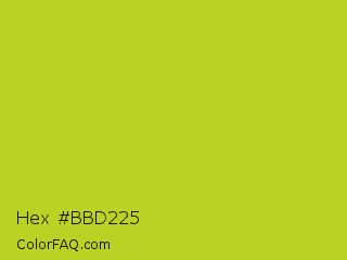 Hex #bbd225 Color is a normal yellow color and the nearest color is Key Lime Pie #bfc921. Hex code #bbd225 and RGB value is rgb(187,210,37). In RGB color space, this color is composed of 73% red, 82% green, 15% blue, In CMYK color space, this color is composed of 11% cyan, 0% magenta, 82% yellow , 18% black , In HSL color space, this color has a hue angle of 68° , 70% saturation and 48% lightness.