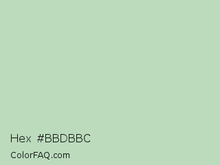 Hex #bbdbbc Color is a light green color and the nearest color is Surf #bbd7c1. Hex code #bbdbbc and RGB value is rgb(187,219,188). In RGB color space, this color is composed of 73% red, 86% green, 74% blue, In CMYK color space, this color is composed of 15% cyan, 0% magenta, 14% yellow , 14% black , In HSL color space, this color has a hue angle of 122° , 31% saturation and 80% lightness.