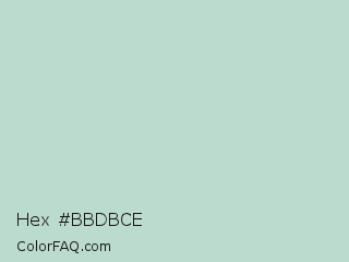 Hex #bbdbce Color is a light green color and the nearest color is Sea Mist #c5dbca. Hex code #bbdbce and RGB value is rgb(187,219,206). In RGB color space, this color is composed of 73% red, 86% green, 81% blue, In CMYK color space, this color is composed of 15% cyan, 0% magenta, 6% yellow , 14% black , In HSL color space, this color has a hue angle of 156° , 31% saturation and 80% lightness.