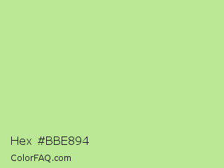 Hex #bbe894 Color is a light green color and the nearest color is Medium Spring Bud #c9dc87. Hex code #bbe894 and RGB value is rgb(187,232,148). In RGB color space, this color is composed of 73% red, 91% green, 58% blue, In CMYK color space, this color is composed of 19% cyan, 0% magenta, 36% yellow , 9% black , In HSL color space, this color has a hue angle of 92° , 65% saturation and 75% lightness.