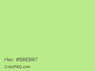Hex #bbeb87 Color is a light green color and the nearest color is Sulu #c1f07c. Hex code #bbeb87 and RGB value is rgb(187,235,135). In RGB color space, this color is composed of 73% red, 92% green, 53% blue, In CMYK color space, this color is composed of 20% cyan, 0% magenta, 43% yellow , 8% black , In HSL color space, this color has a hue angle of 89° , 71% saturation and 73% lightness.