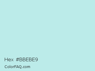 Hex #bbebe9 Color is a very light cyan color and the nearest color is Jagged Ice #c2e8e5. Hex code #bbebe9 and RGB value is rgb(187,235,233). In RGB color space, this color is composed of 73% red, 92% green, 91% blue, In CMYK color space, this color is composed of 20% cyan, 0% magenta, 1% yellow , 8% black , In HSL color space, this color has a hue angle of 178° , 55% saturation and 83% lightness.
