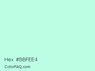 Hex #bbfee4 Color is a very light green color and the nearest color is Aero Blue #c9ffe5. Hex code #bbfee4 and RGB value is rgb(187,254,228). In RGB color space, this color is composed of 73% red, 100% green, 89% blue, In CMYK color space, this color is composed of 26% cyan, 0% magenta, 10% yellow , 0% black , In HSL color space, this color has a hue angle of 157° , 97% saturation and 86% lightness.