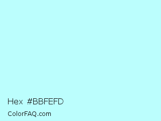 Hex #bbfefd Color is a very light cyan color and the nearest color is Italian Sky Blue #b2ffff. Hex code #bbfefd and RGB value is rgb(187,254,253). In RGB color space, this color is composed of 73% red, 100% green, 99% blue, In CMYK color space, this color is composed of 26% cyan, 0% magenta, 0% yellow , 0% black , In HSL color space, this color has a hue angle of 179° , 97% saturation and 86% lightness.