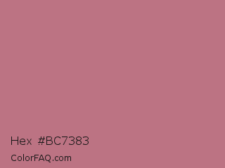 Hex #bc7383 Color is a normal red color and the nearest color is Turkish Rose #b57281. Hex code #bc7383 and RGB value is rgb(188,115,131). In RGB color space, this color is composed of 74% red, 45% green, 51% blue, In CMYK color space, this color is composed of 0% cyan, 39% magenta, 30% yellow , 26% black , In HSL color space, this color has a hue angle of 347° , 35% saturation and 59% lightness.