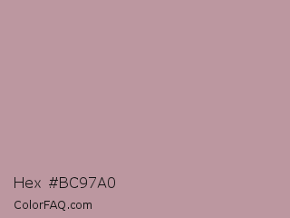 Hex #bc97a0 Color is a light red color and the nearest color is Tuscany #c09999. Hex code #bc97a0 and RGB value is rgb(188,151,160). In RGB color space, this color is composed of 74% red, 59% green, 63% blue, In CMYK color space, this color is composed of 0% cyan, 20% magenta, 15% yellow , 26% black , In HSL color space, this color has a hue angle of 345° , 22% saturation and 66% lightness.