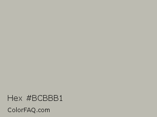 Hex #bcbbb1 Color is a light yellow color and the nearest color is Tide #bfb8b0. Hex code #bcbbb1 and RGB value is rgb(188,187,177). In RGB color space, this color is composed of 74% red, 73% green, 69% blue, In CMYK color space, this color is composed of 0% cyan, 1% magenta, 6% yellow , 26% black , In HSL color space, this color has a hue angle of 55° , 8% saturation and 72% lightness.