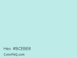Hex #bcebe8 Color is a very light cyan color and the nearest color is Jagged Ice #c2e8e5. Hex code #bcebe8 and RGB value is rgb(188,235,232). In RGB color space, this color is composed of 74% red, 92% green, 91% blue, In CMYK color space, this color is composed of 20% cyan, 0% magenta, 1% yellow , 8% black , In HSL color space, this color has a hue angle of 176° , 54% saturation and 83% lightness.
