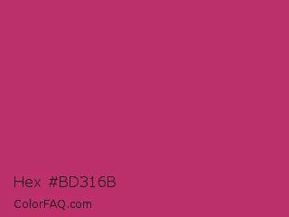 Hex #bd316b Color is a normal rose color and the nearest color is Hibiscus #b6316c. Hex code #bd316b and RGB value is rgb(189,49,107). In RGB color space, this color is composed of 74% red, 19% green, 42% blue, In CMYK color space, this color is composed of 0% cyan, 74% magenta, 43% yellow , 26% black , In HSL color space, this color has a hue angle of 335° , 59% saturation and 47% lightness.
