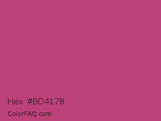 Hex #bd4178 Color is a normal rose color and the nearest color is Fuchsia Rose #c74375. Hex code #bd4178 and RGB value is rgb(189,65,120). In RGB color space, this color is composed of 74% red, 25% green, 47% blue, In CMYK color space, this color is composed of 0% cyan, 66% magenta, 37% yellow , 26% black , In HSL color space, this color has a hue angle of 333° , 49% saturation and 50% lightness.