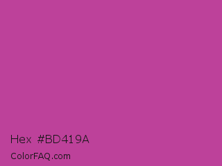 Hex #bd419a Color is a normal magenta color and the nearest color is Byzantine #bd33a4. Hex code #bd419a and RGB value is rgb(189,65,154). In RGB color space, this color is composed of 74% red, 25% green, 60% blue, In CMYK color space, this color is composed of 0% cyan, 66% magenta, 19% yellow , 26% black , In HSL color space, this color has a hue angle of 317° , 49% saturation and 50% lightness.