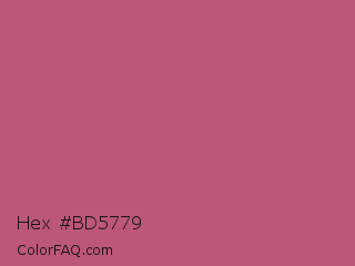 Hex #bd5779 Color is a normal rose color and the nearest color is Tapestry #b05e81. Hex code #bd5779 and RGB value is rgb(189,87,121). In RGB color space, this color is composed of 74% red, 34% green, 47% blue, In CMYK color space, this color is composed of 0% cyan, 54% magenta, 36% yellow , 26% black , In HSL color space, this color has a hue angle of 340° , 44% saturation and 54% lightness.