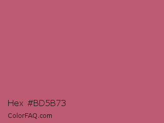 Hex #bd5b73 Color is a normal red color and the nearest color is Tapestry #b05e81. Hex code #bd5b73 and RGB value is rgb(189,91,115). In RGB color space, this color is composed of 74% red, 36% green, 45% blue, In CMYK color space, this color is composed of 0% cyan, 52% magenta, 39% yellow , 26% black , In HSL color space, this color has a hue angle of 345° , 43% saturation and 55% lightness.