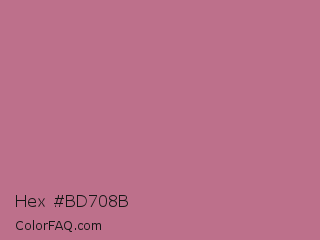 Hex #bd708b Color is a normal rose color and the nearest color is Turkish Rose #b57281. Hex code #bd708b and RGB value is rgb(189,112,139). In RGB color space, this color is composed of 74% red, 44% green, 55% blue, In CMYK color space, this color is composed of 0% cyan, 41% magenta, 26% yellow , 26% black , In HSL color space, this color has a hue angle of 339° , 37% saturation and 59% lightness.