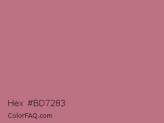 Hex #bd7283 Color is a normal red color and the nearest color is Turkish Rose #b57281. Hex code #bd7283 and RGB value is rgb(189,114,131). In RGB color space, this color is composed of 74% red, 45% green, 51% blue, In CMYK color space, this color is composed of 0% cyan, 40% magenta, 31% yellow , 26% black , In HSL color space, this color has a hue angle of 346° , 36% saturation and 59% lightness.