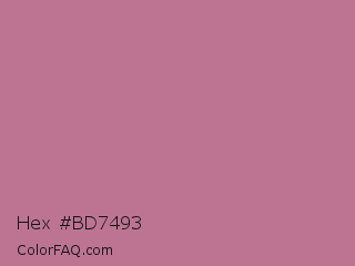 Hex #bd7493 Color is a normal rose color and the nearest color is English Lavender #b48395. Hex code #bd7493 and RGB value is rgb(189,116,147). In RGB color space, this color is composed of 74% red, 45% green, 58% blue, In CMYK color space, this color is composed of 0% cyan, 39% magenta, 22% yellow , 26% black , In HSL color space, this color has a hue angle of 335° , 36% saturation and 60% lightness.