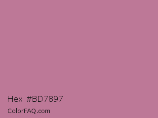 Hex #bd7897 Color is a light rose color and the nearest color is English Lavender #b48395. Hex code #bd7897 and RGB value is rgb(189,120,151). In RGB color space, this color is composed of 74% red, 47% green, 59% blue, In CMYK color space, this color is composed of 0% cyan, 37% magenta, 20% yellow , 26% black , In HSL color space, this color has a hue angle of 333° , 34% saturation and 61% lightness.