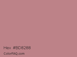 Hex #bd8288 Color is a light red color and the nearest color is Old Rose #c08081. Hex code #bd8288 and RGB value is rgb(189,130,136). In RGB color space, this color is composed of 74% red, 51% green, 53% blue, In CMYK color space, this color is composed of 0% cyan, 31% magenta, 28% yellow , 26% black , In HSL color space, this color has a hue angle of 354° , 31% saturation and 63% lightness.