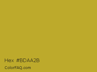 Hex #bdaa2b Color is a normal yellow color and the nearest color is Hokey Pokey #c8a528. Hex code #bdaa2b and RGB value is rgb(189,170,43). In RGB color space, this color is composed of 74% red, 67% green, 17% blue, In CMYK color space, this color is composed of 0% cyan, 10% magenta, 77% yellow , 26% black , In HSL color space, this color has a hue angle of 52° , 63% saturation and 45% lightness.
