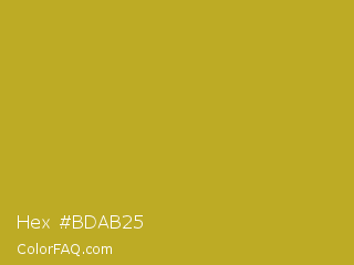 Hex #bdab25 Color is a normal yellow color and the nearest color is Hokey Pokey #c8a528. Hex code #bdab25 and RGB value is rgb(189,171,37). In RGB color space, this color is composed of 74% red, 67% green, 15% blue, In CMYK color space, this color is composed of 0% cyan, 10% magenta, 80% yellow , 26% black , In HSL color space, this color has a hue angle of 53° , 67% saturation and 44% lightness.