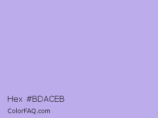 Hex #bdaceb Color is a light indigo color and the nearest color is Biloba Flower #b2a1ea. Hex code #bdaceb and RGB value is rgb(189,172,235). In RGB color space, this color is composed of 74% red, 67% green, 92% blue, In CMYK color space, this color is composed of 20% cyan, 27% magenta, 0% yellow , 8% black , In HSL color space, this color has a hue angle of 256° , 61% saturation and 80% lightness.