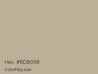 Hex #bdb098 Color is a light orange color and the nearest color is Heathered Gray #b6b095. Hex code #bdb098 and RGB value is rgb(189,176,152). In RGB color space, this color is composed of 74% red, 69% green, 60% blue, In CMYK color space, this color is composed of 0% cyan, 7% magenta, 20% yellow , 26% black , In HSL color space, this color has a hue angle of 39° , 22% saturation and 67% lightness.