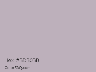 Hex #bdb0bb Color is a light magenta color and the nearest color is Pink Swan #beb5b7. Hex code #bdb0bb and RGB value is rgb(189,176,187). In RGB color space, this color is composed of 74% red, 69% green, 73% blue, In CMYK color space, this color is composed of 0% cyan, 7% magenta, 1% yellow , 26% black , In HSL color space, this color has a hue angle of 309° , 9% saturation and 72% lightness.