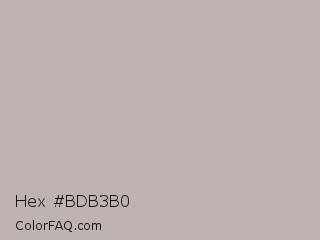 Hex #bdb3b0 Color is a light red color and the nearest color is Black Shadows #bfafb2. Hex code #bdb3b0 and RGB value is rgb(189,179,176). In RGB color space, this color is composed of 74% red, 70% green, 69% blue, In CMYK color space, this color is composed of 0% cyan, 5% magenta, 7% yellow , 26% black , In HSL color space, this color has a hue angle of 14° , 9% saturation and 72% lightness.