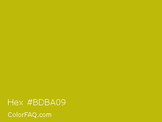 Hex #bdba09 Color is a normal yellow color and the nearest color is La Rioja #b3c110. Hex code #bdba09 and RGB value is rgb(189,186,9). In RGB color space, this color is composed of 74% red, 73% green, 4% blue, In CMYK color space, this color is composed of 0% cyan, 2% magenta, 95% yellow , 26% black , In HSL color space, this color has a hue angle of 59° , 91% saturation and 39% lightness.