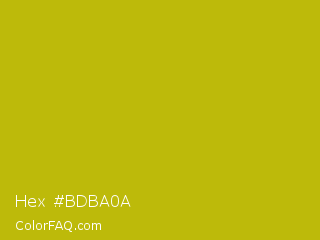 Hex #bdba0a Color is a normal yellow color and the nearest color is La Rioja #b3c110. Hex code #bdba0a and RGB value is rgb(189,186,10). In RGB color space, this color is composed of 74% red, 73% green, 4% blue, In CMYK color space, this color is composed of 0% cyan, 2% magenta, 95% yellow , 26% black , In HSL color space, this color has a hue angle of 59° , 90% saturation and 39% lightness.