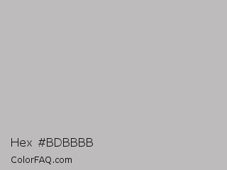 Hex #bdbbbb Color is a light red color and the nearest color is Gray X11 Gray #bebebe. Hex code #bdbbbb and RGB value is rgb(189,187,187). In RGB color space, this color is composed of 74% red, 73% green, 73% blue, In CMYK color space, this color is composed of 0% cyan, 1% magenta, 1% yellow , 26% black , In HSL color space, this color has a hue angle of 0° , 1% saturation and 74% lightness.