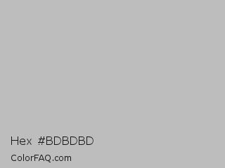 Hex #bdbdbd Color is a light red color and the nearest color is Gray X11 Gray #bebebe. Hex code #bdbdbd and RGB value is rgb(189,189,189). In RGB color space, this color is composed of 74% red, 74% green, 74% blue, In CMYK color space, this color is composed of 0% cyan, 0% magenta, 0% yellow , 26% black , In HSL color space, this color has a hue angle of 0° , 0% saturation and 74% lightness.