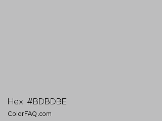 Hex #bdbdbe Color is a light blue color and the nearest color is Gray X11 Gray #bebebe. Hex code #bdbdbe and RGB value is rgb(189,189,190). In RGB color space, this color is composed of 74% red, 74% green, 75% blue, In CMYK color space, this color is composed of 1% cyan, 1% magenta, 0% yellow , 25% black , In HSL color space, this color has a hue angle of 240° , 1% saturation and 74% lightness.