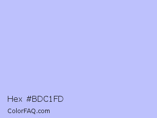 Hex #bdc1fd Color is a very light blue color and the nearest color is Melrose #c7c1ff. Hex code #bdc1fd and RGB value is rgb(189,193,253). In RGB color space, this color is composed of 74% red, 76% green, 99% blue, In CMYK color space, this color is composed of 25% cyan, 24% magenta, 0% yellow , 1% black , In HSL color space, this color has a hue angle of 236° , 94% saturation and 87% lightness.