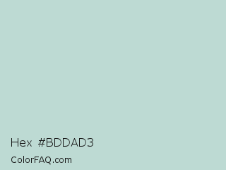 Hex #bddad3 Color is a light cyan color and the nearest color is Tiara #c3d1d1. Hex code #bddad3 and RGB value is rgb(189,218,211). In RGB color space, this color is composed of 74% red, 85% green, 83% blue, In CMYK color space, this color is composed of 13% cyan, 0% magenta, 3% yellow , 15% black , In HSL color space, this color has a hue angle of 166° , 28% saturation and 80% lightness.