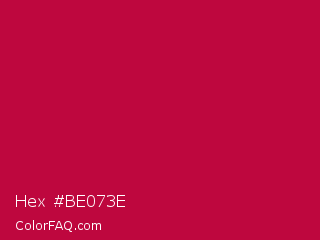Hex #be073e Color is a normal rose color and the nearest color is Red NCS #c40233. Hex code #be073e and RGB value is rgb(190,7,62). In RGB color space, this color is composed of 75% red, 3% green, 24% blue, In CMYK color space, this color is composed of 0% cyan, 96% magenta, 67% yellow , 25% black , In HSL color space, this color has a hue angle of 342° , 93% saturation and 39% lightness.