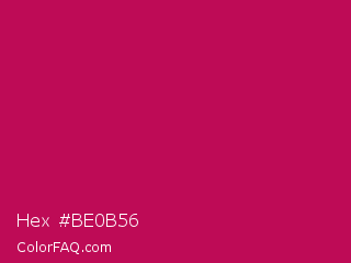 Hex #be0b56 Color is a normal rose color and the nearest color is Pictorial Carmine #c30b4e. Hex code #be0b56 and RGB value is rgb(190,11,86). In RGB color space, this color is composed of 75% red, 4% green, 34% blue, In CMYK color space, this color is composed of 0% cyan, 94% magenta, 55% yellow , 25% black , In HSL color space, this color has a hue angle of 335° , 89% saturation and 39% lightness.