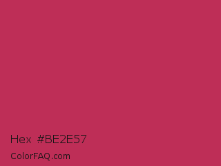 Hex #be2e57 Color is a normal rose color and the nearest color is Dingy Dungeon #c53151. Hex code #be2e57 and RGB value is rgb(190,46,87). In RGB color space, this color is composed of 75% red, 18% green, 34% blue, In CMYK color space, this color is composed of 0% cyan, 76% magenta, 54% yellow , 25% black , In HSL color space, this color has a hue angle of 343° , 61% saturation and 46% lightness.