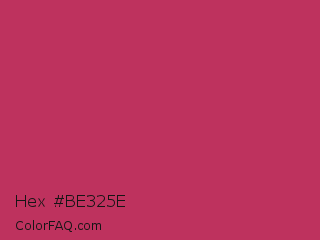 Hex #be325e Color is a normal rose color and the nearest color is Rich Maroon #b03060. Hex code #be325e and RGB value is rgb(190,50,94). In RGB color space, this color is composed of 75% red, 20% green, 37% blue, In CMYK color space, this color is composed of 0% cyan, 74% magenta, 51% yellow , 25% black , In HSL color space, this color has a hue angle of 341° , 58% saturation and 47% lightness.
