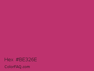 Hex #be326e Color is a normal rose color and the nearest color is Hibiscus #b6316c. Hex code #be326e and RGB value is rgb(190,50,110). In RGB color space, this color is composed of 75% red, 20% green, 43% blue, In CMYK color space, this color is composed of 0% cyan, 74% magenta, 42% yellow , 25% black , In HSL color space, this color has a hue angle of 334° , 58% saturation and 47% lightness.