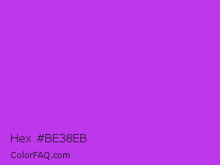 Hex #be38eb Color is a normal purple color and the nearest color is Steel Pink #cc33cc. Hex code #be38eb and RGB value is rgb(190,56,235). In RGB color space, this color is composed of 75% red, 22% green, 92% blue, In CMYK color space, this color is composed of 19% cyan, 76% magenta, 0% yellow , 8% black , In HSL color space, this color has a hue angle of 285° , 82% saturation and 57% lightness.